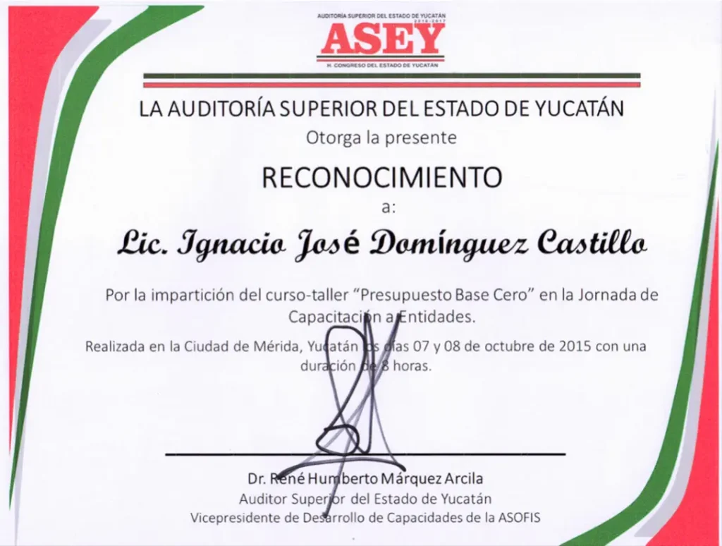 Reconocimientos por ponencias Auditoria Superior del Estado de Yucatán