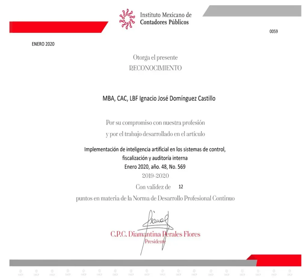Reconocimientos por Publicaciones Instituto Mexicano de Contadores Públicos