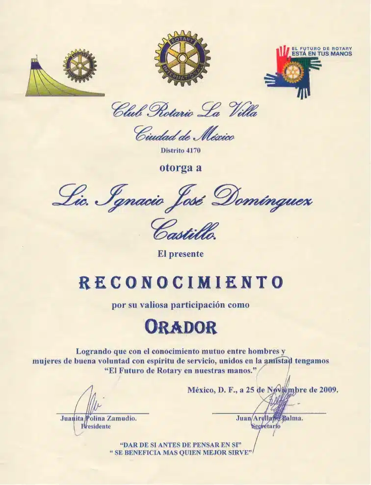 Reconocimientos por ponencias Club de rotarios