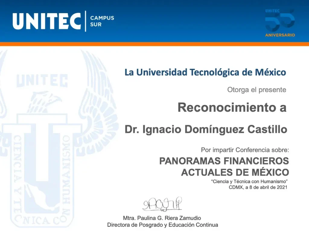 Reconocimientos por ponencias Universidad del Pedregal